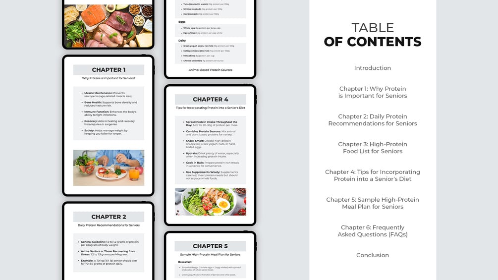 ✅ 10+ Pages of Actionable Content: Straightforward, jargon-free guidance to help seniors (or caregivers) prioritize protein without stress.