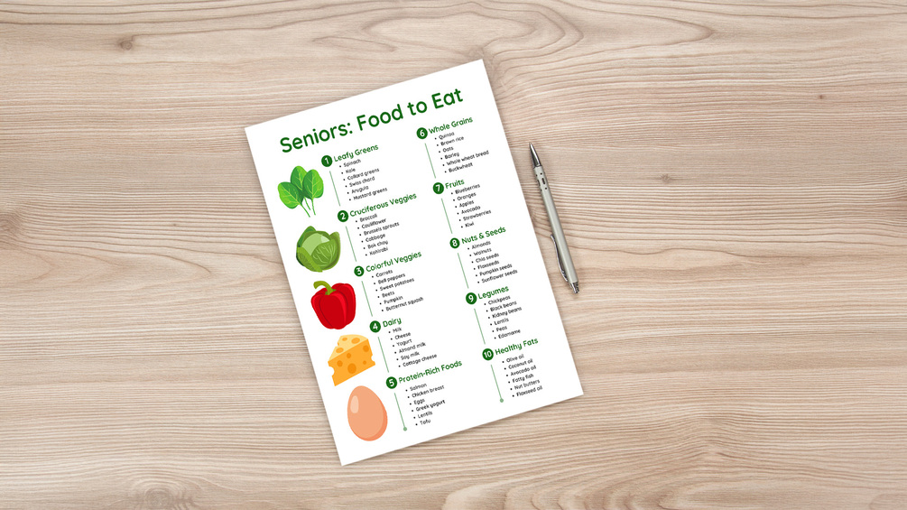 Discover the ultimate guide to senior nutrition with 100+ Senior Foods to Eat & Avoid. This comprehensive PDF highlights 50+ nutrient-rich foods to support healthy aging and 50+ foods to avoid for better well-being. Perfect for seniors and caregivers, it offers practical tips to boost energy, improve health, and maintain a balanced diet.